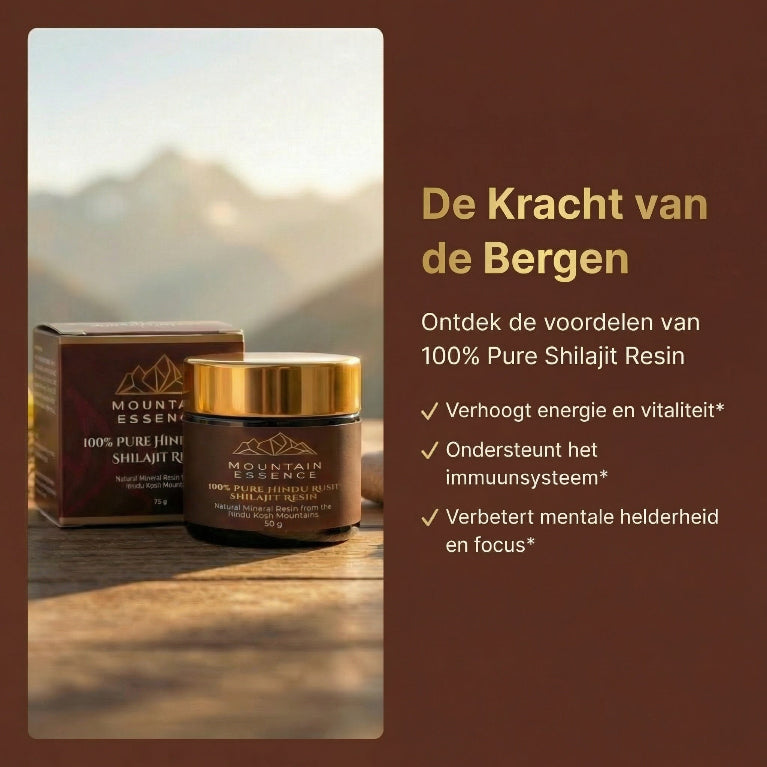 Mountain Essence Shilajit is een 100% pure shilajit resin afkomstig uit het Hindu Kush gebergte in Afghanistan. Deze natuurlijke mineralenresin wordt al eeuwenlang gebruikt voor energie, focus en herstel.